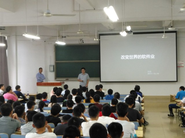 10月10日上午,yl6809永利官网邀请了科大讯飞股份有限公司周健经理,在翡翠湖校区3教204为2017级新生开展了题为“改变世界的软件业”的精彩讲座。