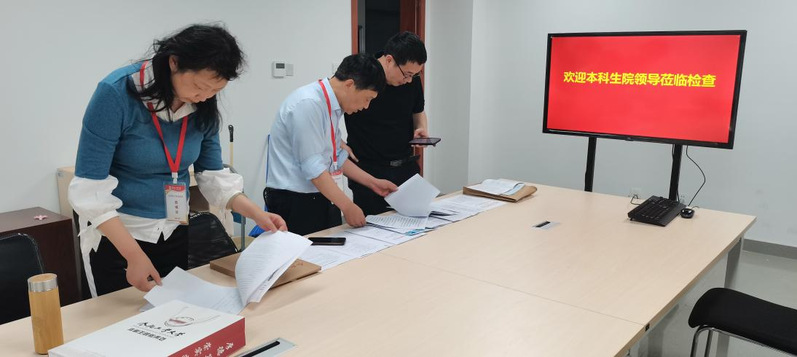 随后,检查小组到学院对毕业设计的管理文件、学生的毕业论文课题任务书、开题报告、中期进展及毕业设计记录等进行了认真检查评价,对学院毕业设计答辩工作组织和管理给予了充分的肯定,同时也提出了意见和建议。