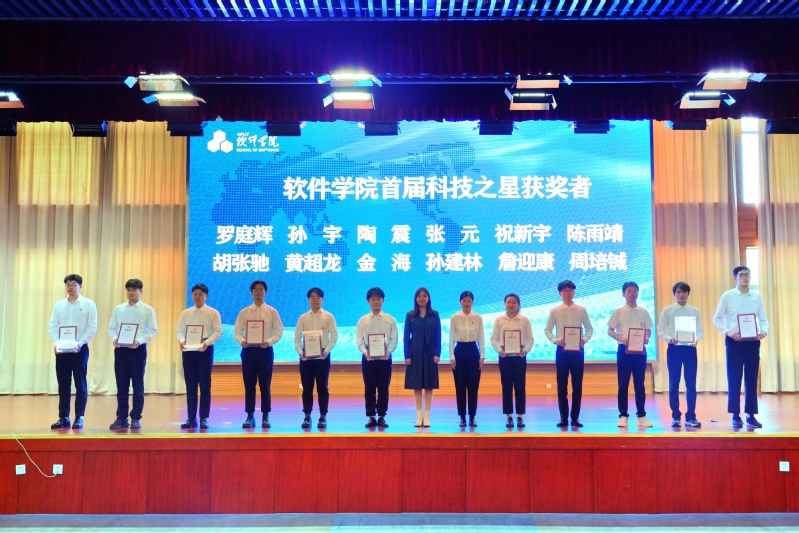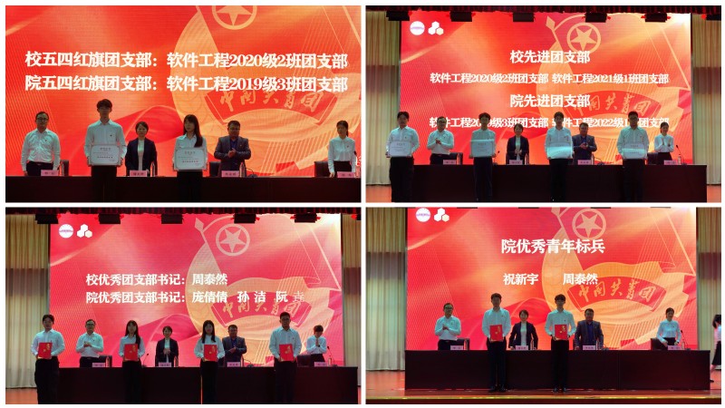 储文静宣读了《关于表彰2022-2023学年学院共青团工作先进集体和先进个人的决定》,希望受表彰的先进集体和个人以此为新的起点,再接再厉,再创佳绩。希望全院团组织和广大团员青年以他们为榜样,深入学习贯彻习近平新时代中国特色社会主义思想,继承和发扬“五四”精神,坚定信心、刻苦学习、开拓进取,在青春赛道上不断跑出软件青年的“加速度”,谱写青春担当,绽放青春光彩。