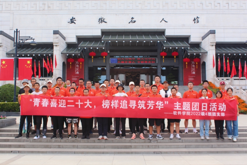 榜样力量,青年“寻”。9月28日,22-4班团支部开展了“青春喜迎二十大,榜样追寻筑芳华”主题团日活动。在渡江战役纪念馆中,同学们透过一张张照片,一件件文物,去聆听那一段英勇的革命历史,缅怀革命先烈。在安徽名人馆,大家认识了安徽杰出历史人物在中国历史文化的创造、传承和近现代中国发展中做出的重要贡献,也从先进人物身上汲取了成长力量。