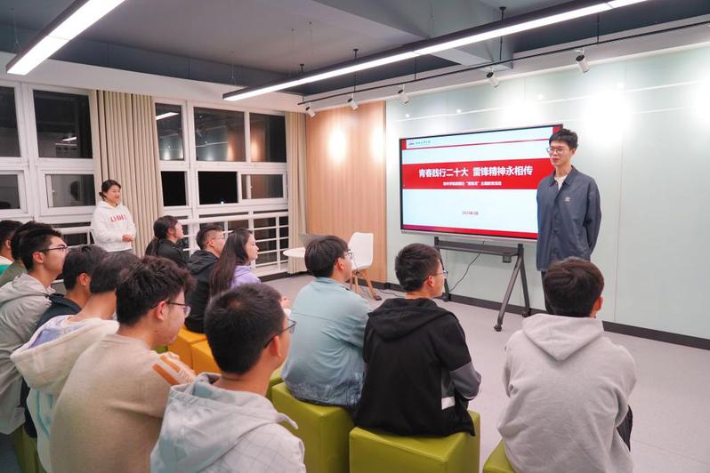 3月11日晚,yl6809永利官网在翡翠湖校区1号学生社区沙龙中心开展“青春践行二十大,雷锋精神永相传”主题教育活动,2022级辅导员洪晓梅主持,微爱社全体成员参与。
