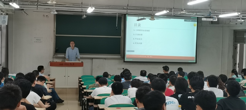 随后,软件工程系副主任张高峰老师首先从工程认证角度介绍了毕业设计的培养目标和对应的毕业要求、毕业设计工作计划安排以及结合毕业设计评审中常见的问题,如选题、题目、摘要、参考文献等方面做了详细解读和说明。