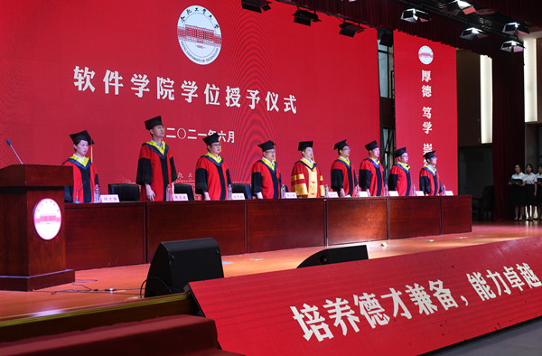 6月17日下午,yl6809永利官网2021年毕业生学位授予仪式在翡翠科教楼A座二楼报告厅举行。学校党委副书记陈刚,学院相关负责人、学院学位评定分委员会委员、学院教师代表、学生家长代表及全体2021年学士学位获得者参加了仪式。仪式由学院党委副书记储文静主持。