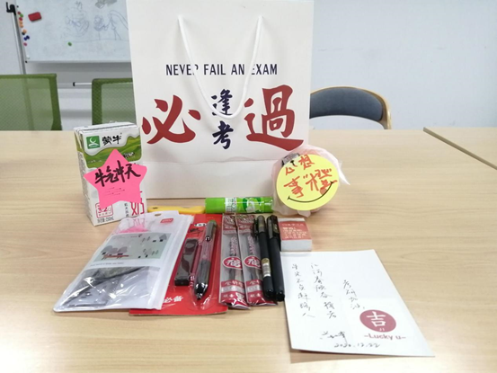 12月22日上午,yl6809永利官网学生会成员和党员同学们集聚在教室,为考研学长学姐们包装着“考研加油包”,“考研加油包”中包含着考试所用到的各种文具以及各种有着美好寓意的小礼品:寓意“牛气冲天”的牛奶,赋予“心想事橙”“马到橙功”祝愿的橙子,还有学院领导们和老师们亲笔手写的考研加油寄语。为了不占用考研同学的时间,储文静书记与17级辅导员储玲娜将一份份带有满满祝福的加油包亲自送到了考研同学的宿舍,储文静书记叮嘱同学们在备研的最后阶段要保证良好的作息规律,做好考研前的疫情防控准备工作,同时保持稳定的心态,以积极的态度去迎接这次挑战。