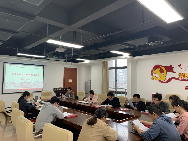 为进一步加强学生工作队伍建设,充分发挥班主任在学院的育人作用,10月14日下午,学院在翡翠科教楼A座901召开“凝心聚力、分享共进” 班主任工作经验交流会。学院党委副书记储文静、学院教学副院长薛峰、学院全体班主任及辅导员参加了交流会。会议由党委副书记储文静主持。