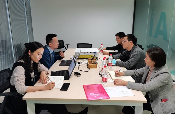 在科大讯飞,副院长薛峰首先对在该单位进行企业实习的学生的实习工作内容、住宿和薪酬等方面进行了解,随后就大一新生到科大讯飞进行认知实习有关事宜进行商议。系主任徐本柱也就学生在企业完成毕业设计存在的相关问题和科大讯飞商讨合作方式。
