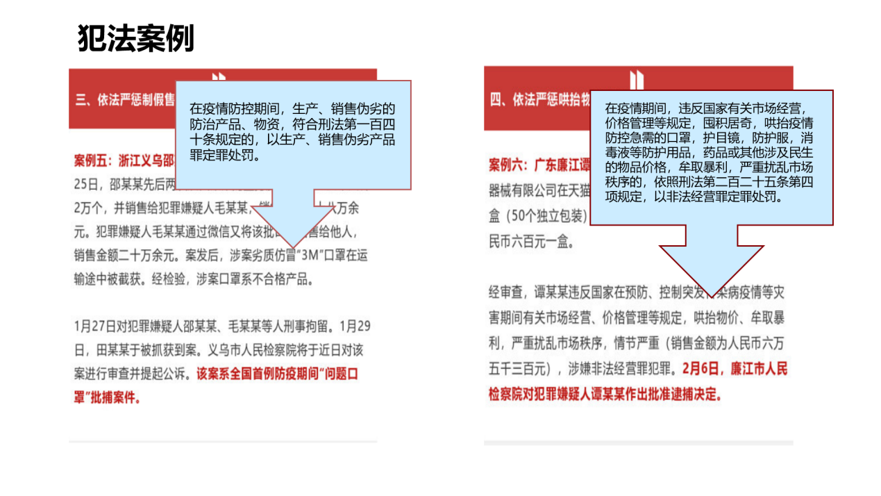在班会中,主讲人张凤仪首先通过讲述了疫情期间一些违法犯罪的案例引出了主题,让同学们通过反思疫情下大众行为的合法性,思考如何助力杜绝违法乱纪行为。而后请同学们填写了一个关于“法律知识在大学生中的普及度”的调查问卷,希望敦促大家回顾自己对基础法律知识的了解程度。接着对相关案件涉及违反的相关法律法规做了简单的普及,并针对《中华人民共和国野生动物保护法》《中华人民共和国传染病防治法》的基本内容进行了相应讲述。