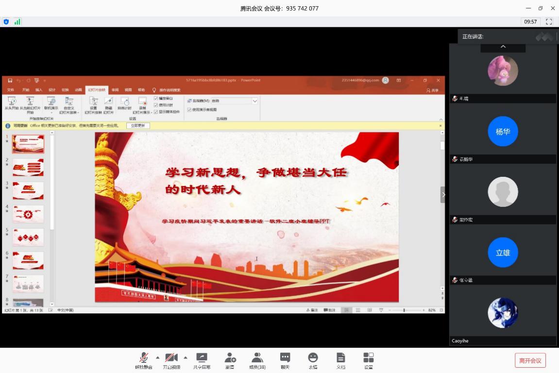 这次小班辅导同上次团日活动一样,同样采取线上形式,不同的是同学们可以更熟练的运用电脑工具进行汇报总结。在段林晨的报告中,主要涵盖了四大主要内容:1.坚定理想信念,凝聚思想意识;2.弘扬爱国主义,厚植家国情怀;3.讲好战役故事,矢志担当作为;4.深化劳动教育,促进全面发展。段林晨同学指出了中国的生命大于金钱的重要思想,在治疗新型冠状病毒的巨大资金支出。同时将中国对于处在国外的中国人员的援助与一些其他国家对海外本国人员的援助进行对比,具体真切地体现了中国社会主义制度的优越性。活动当中,各位同学积极参与,表达自己的看法。商格菲同学表达了新时代新青年的大无畏精神,在抗疫活动中冲锋陷阵;之后,梁臣宏和罗庭辉同学均对抗议名将钟南山作出介绍与分析,教育同学们要向钟老学习;李激扬同学又就读书与自身建设做出一系列叙述,表达了希望同学们不能完全功利的读书,要享受读书。