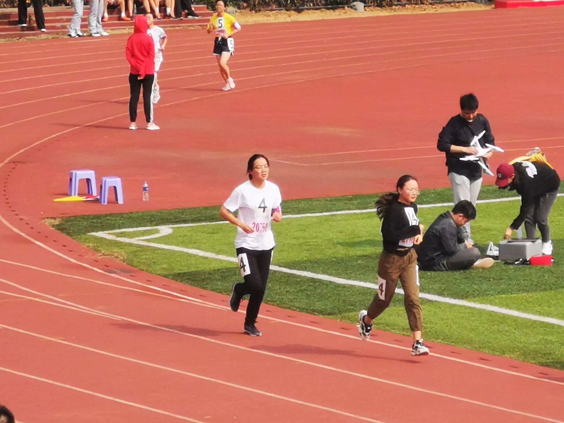 在个人项目中,我院的顾晶晶同学取得了女子跳高b组的第3名的好成绩,李鑫宇同学夺得了女子3000m的第四名。顾晶晶同学在比赛中不惧强敌,全力发挥,发扬了yl6809永利官网心无旁骛,不惧艰难的精神。而李鑫宇同学在不仅参加了女子100m比赛,随后又参加了女子3000m比赛,诠释了不断突破自我、坚持不懈的奋斗精神。