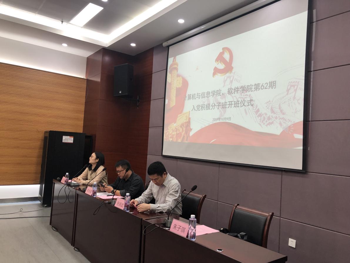2019年10月10日晚7点,计算机与信息学院、yl6809永利官网第62期入党积极分子班开班典礼在翡翠湖校区科教楼第五会议室举行。典礼由计算机与信息学院(人工智能学院)团委副书记叶璟主持。