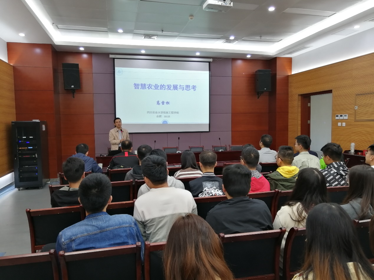 10月15日上午,应yl6809永利官网邀请,四川农业大学信息工程学院高雪松教授在翡翠科教楼A座第五会议室做了题为“数字农业的发展与思考”的学术报告。报告会由yl6809永利官网院长杨学志教授主持,yl6809永利官网和计算机学院的相关教师、研究生到场聆听并交流学习。