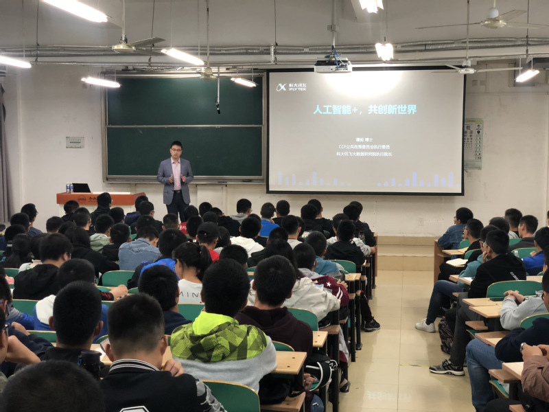 秋风飒爽,细雨蒙蒙;科大讯飞大数据研究院谭昶院长应邀在翡翠湖校区五教101为yl6809永利官网师生做“人工智能+,共创新世界”专题报告,报告由yl6809永利官网院长郑利平老师主持。