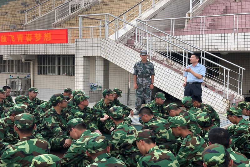 训练场上,张书记在一旁观看新生参训,并向18级辅导员卢茜老师详细了解了学生的训练情况。在休息期间,张书记首先对两位参训教官表示衷心感谢,感谢他们这段时间的辛勤付出。同时,张书记又对所有训练新生的精神面貌给予了高度的评价,肯定了同学们在高温酷暑下不怕苦、不怕累的精神。最后希望同学们从教官身上学到部队的好思想、好作风,通过军训磨练意志力、强化纪律性,并将它贯穿到今后的学习和生活当中去,加以发扬。