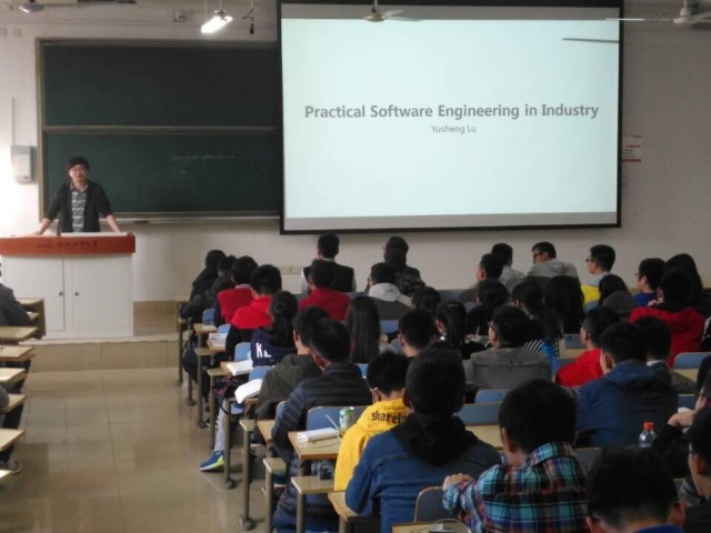 10月31日上午,在翡翠湖校区翠三教204举办了《软件工程在工业界的实践》报告会,报告会邀请的是yl6809永利官网2013届毕业生卢誉声,全体2017级新生聆听了此次报告会。