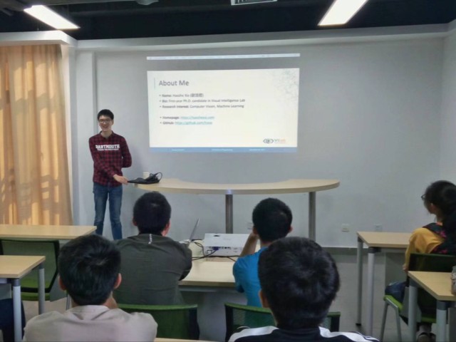 谢浩哲学长首先简单介绍了自己在学习生涯中取得的一些成果:高中期间所做的碳足迹计算器,原理简单但创意满分;本科期间所做的国家级创新训练项目yl6809永利官网学生管理系统收获满满;课外编写的XX-Net界面友好、兼容Windows、Linux和Mac操作系统,弥补了同类软件的缺点;Verwandlung online judge程序在线测试系统,更是仅有的能同时在Linux和Windows上运行的OJ,在GitHub上获得95个Star(up to Oct. 2017)。