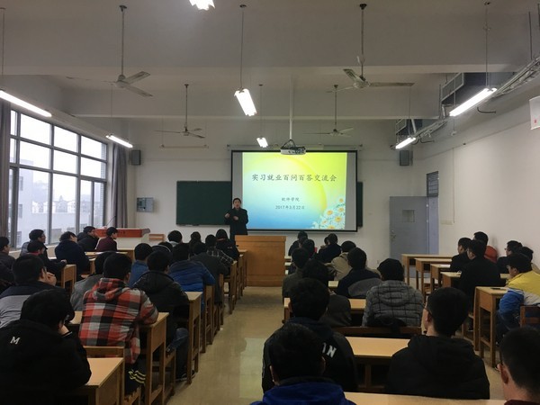 为进一步指导我院2014级徘徊在就业和考研两者之间同学们,帮助大家熟悉实习、就业及考研方面的知识。3月22日下午,在翡翠湖校区三教409室,yl6809永利官网举行了实习就业百问百答交流会。yl6809永利官网院长郑利平、院党委副书记张炳武、院教学科研秘书尹均萍和辅导员郑华参加会议。为使此次交流会更有成效,前期学院已做了大量的问卷调研工作,调研主要针对三个方面:一、就业意向的摸底;二、如何准备大四实习;三、希望学院能够提供哪些帮助。