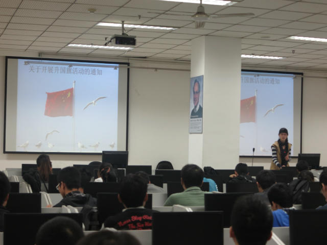 4月13日下午五点,各年级辅导员通过年级会、寝室长会的形式向学院的各位同学说明了参加此次升国旗仪式的重要性、着装和礼仪要求等。14日上午7点15分,随着五星红旗冉冉升起,参加仪式全体人员面向国旗肃立敬礼。