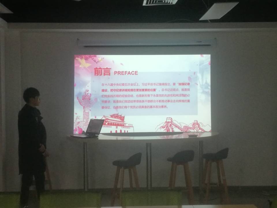 首先,主讲人李浩田通过PPT的形式向大家讲述了习近平总书记眼中的守纪律,讲规矩是什么样子的,其次介绍了党的政治纪律和政治规矩的内涵及定义,党的政治纪律和政治规矩是全体党员的行为规范和行动准则,也是党的凝聚力、战斗力的重要体现和可靠保证。然后,介绍了守纪律讲规矩的具体要求,讲述了党员需要做到的“五个必须”,“五个决不允许”,“十个始终”,“十个自觉”等内容,规范了党员的行为和准则。下面介绍了守纪律,讲规矩的重大意义,以及如何准确把握党规党纪的深刻内涵和如何模范执行党的纪律和规矩等内容。