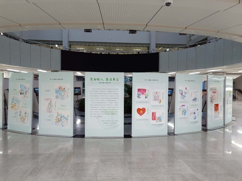为深入学习贯彻习近平新时代中国特色社会主义思想和党的十九大精神,更好地弘扬正气,传播廉政文化,进一步增强广大党员干部的廉洁自律意识和从政意识,筑牢拒腐防变的思想道德防线。在中国共产党成立97周年之际,校纪委办公室、党委宣传部、yl6809永利官网党委联合举办漫画家韩一民先生“清白做人、廉洁奉公”反腐倡廉主题漫画展。
