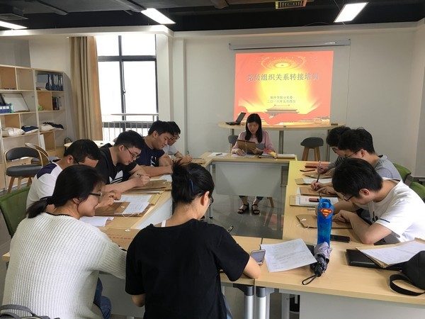 会上,辅导员郑华老师向全体学生党员介绍了党员组织关系的定义,强调了党员组织关系转接的重要性。随后,郑老师以转往省内、省外两个案例,对党员组织关系使用范围、接转权限、转接类型、办理程序及回执制度等进行了逐一说明,重点强调了组织关系转接表中介绍信抬头党组织名称和转入单位的填写,并指出往届毕业生党员组织关系转接当中所遇到的问题和容易混淆出错的地方。同时,郑老师和毕业生党员进行了亲切交流,对同学们提出的疑问进行了一一解答。
