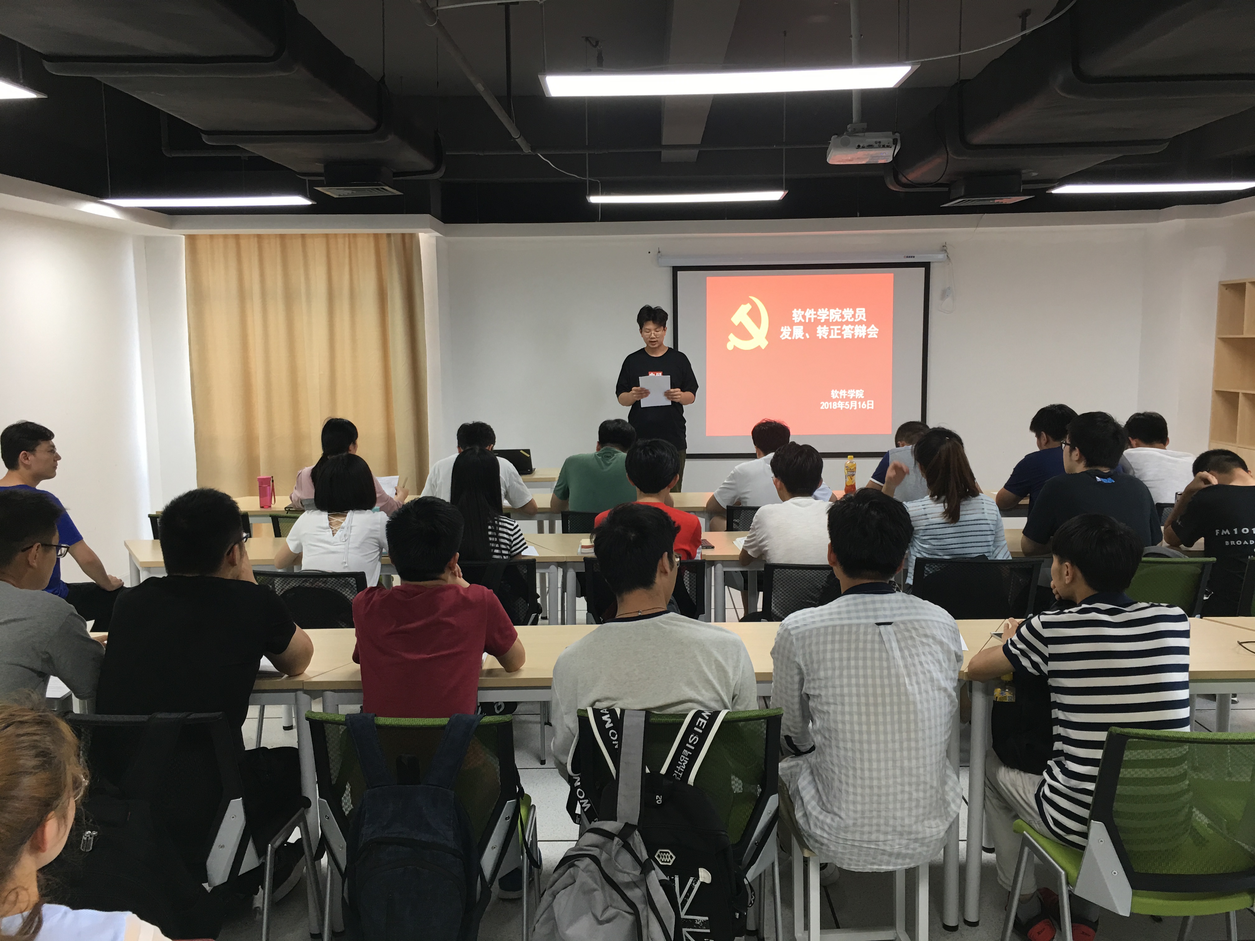 5月16日-5月17日,yl6809永利官网在科教楼B803举行了2018上半年党员发展、转正答辩会。答辩评委由学生党支部书记袁杨华老师、学生党支部副书记郑华老师以及党员代表组成。