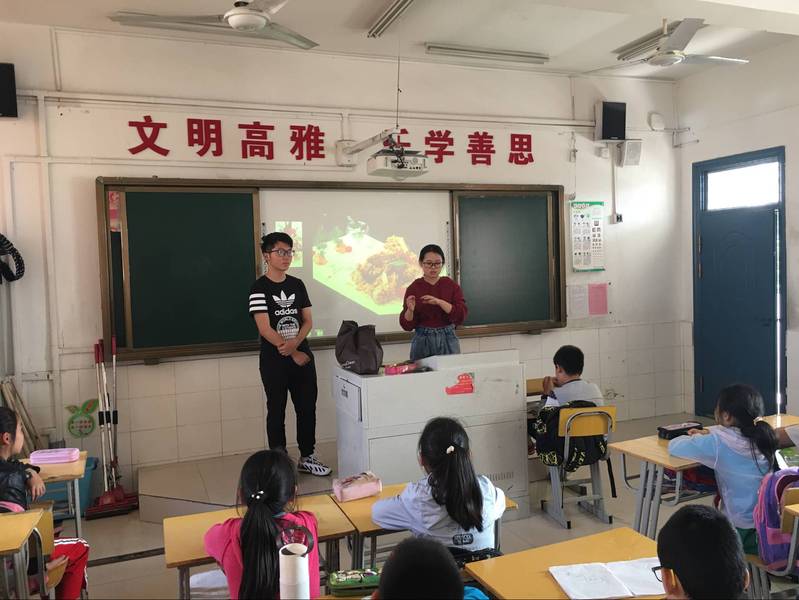 此次志愿者服务的目的是增加与桃花工业园小学学生的沟通机会,并能够在课堂上帮助孩子更多了解中国传统美食文化、增加对传统文化的认知。此次活动绝对是考验大家的耐心和责任心,因为很多情况下小孩子相对比较躁动。而且不是所有学生都是对中国美食文化感兴趣的,所以如何调动学生的积极性是一个大问题。虽然活动并不一帆风顺,但是在老师和我们这些志愿者的共同努力下,教学活动还是有序地进行了下去。临别之际,许多小孩子和我们都依依不舍,我们在彼此之间建立了深厚的友谊。