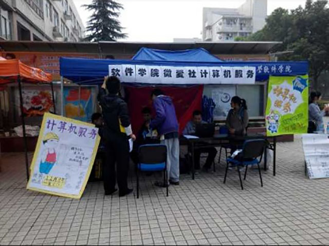 11月3日上午,于工大第一食堂前,聚集了一群人正紧张的工作。许多人不明白发生了什么,走上前看到宣传海报才知道,原来yl6809永利官网的“微爱社”正在举办名为“计算机服务”的活动。